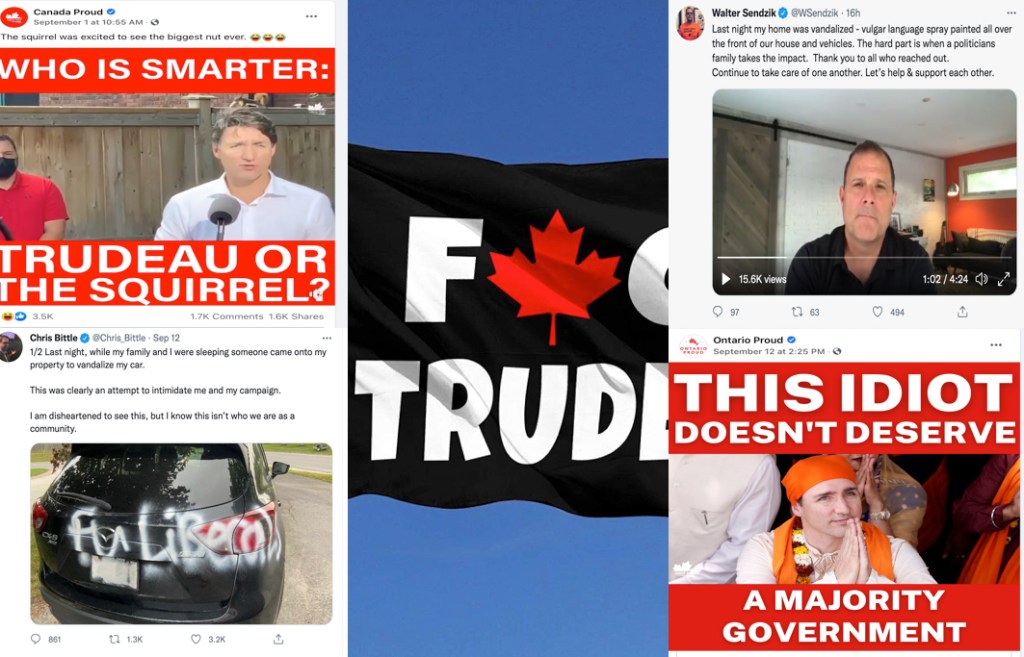 These attacks mirror the numerous aggressive campaign protests against the Liberal Party, sometimes including rock throwing, sometimes manifesting in actual physical attacks like the September 14th attack on Marc Serre, a Liberal candidate in Northern Ontario, in his office.
