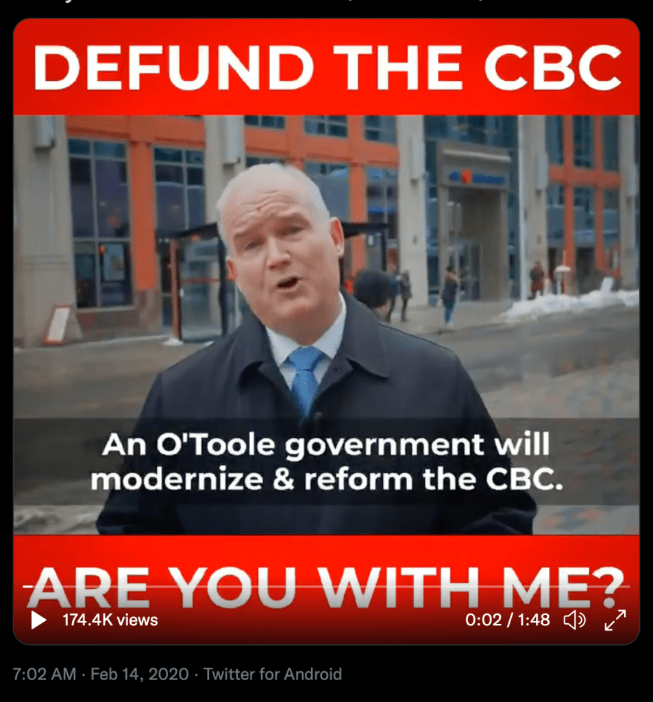 What’s the answer? Some suggest compromise but compromise with those who seek cruelty isn’t a solution. Where’s the midway point between kind and cruel? Maybe the answers can be found in the things Conservatives most fear, things like- support for the vulnerable, Universal Healthcare, protection for a woman’s right to choose, heightened environmental regulation, compassion for refugees and immigrants, and considerate public discourse. And maybe to facilitate that public discourse the answer would lie in revitalizing the CBC. After all, if the CBC couldn’t provide a platform wherein we could better listen to each other Erin O’Toole wouldn’t be obsessed with, “defunding,” it.