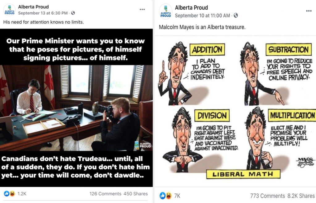 Canada Proud (for which Ballingall’s Mobilize Media is also the main vendor) has 338,524 followers, Ontario Proud 448,087 followers. That’s massive. There is no meaningful social media counterpoint to these pages. They run amok with their arsenal of inflammatory innuendo and disingenuous information entirely unchallenged. I wrote an in depth breakdown on what Ontario Proud does and how they do it in 2019 entitled “What is Ontario Proud? Who is Ontario Proud? (And why are they lying to your Mom?)” that gives a deeper look at their methodology. I can break it down here simply though- Ontario Proud first works to get invited into your house. They get invited in via clickbait posts like meme’s about the beauty of Canada’s natural wonders or a stories about kittens being thrown onto a highway or the Toronto Raptors Championship run. Once people click on an article and/or follow their page, once they allow Ballingall into their house, they are then lined up via the Facebook algorithm for daily bombardment of weaponized misinformation that seeks to prevent family and friends from talking and listening to one another. But mostly, mostly Ballingall looks to cultivate rage and undermine even the most modest vestiges of respect for his opponents. That bombardment of bombast, that litany of hate is pointedly aimed towards the Trudeau government while on the flipside, Ontario Proud portrays the Conservative party in only a positive light.